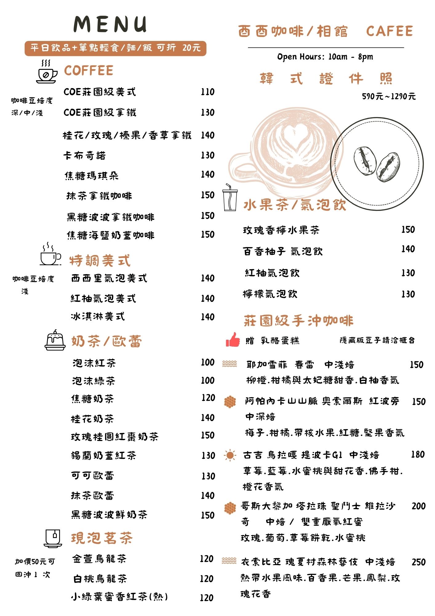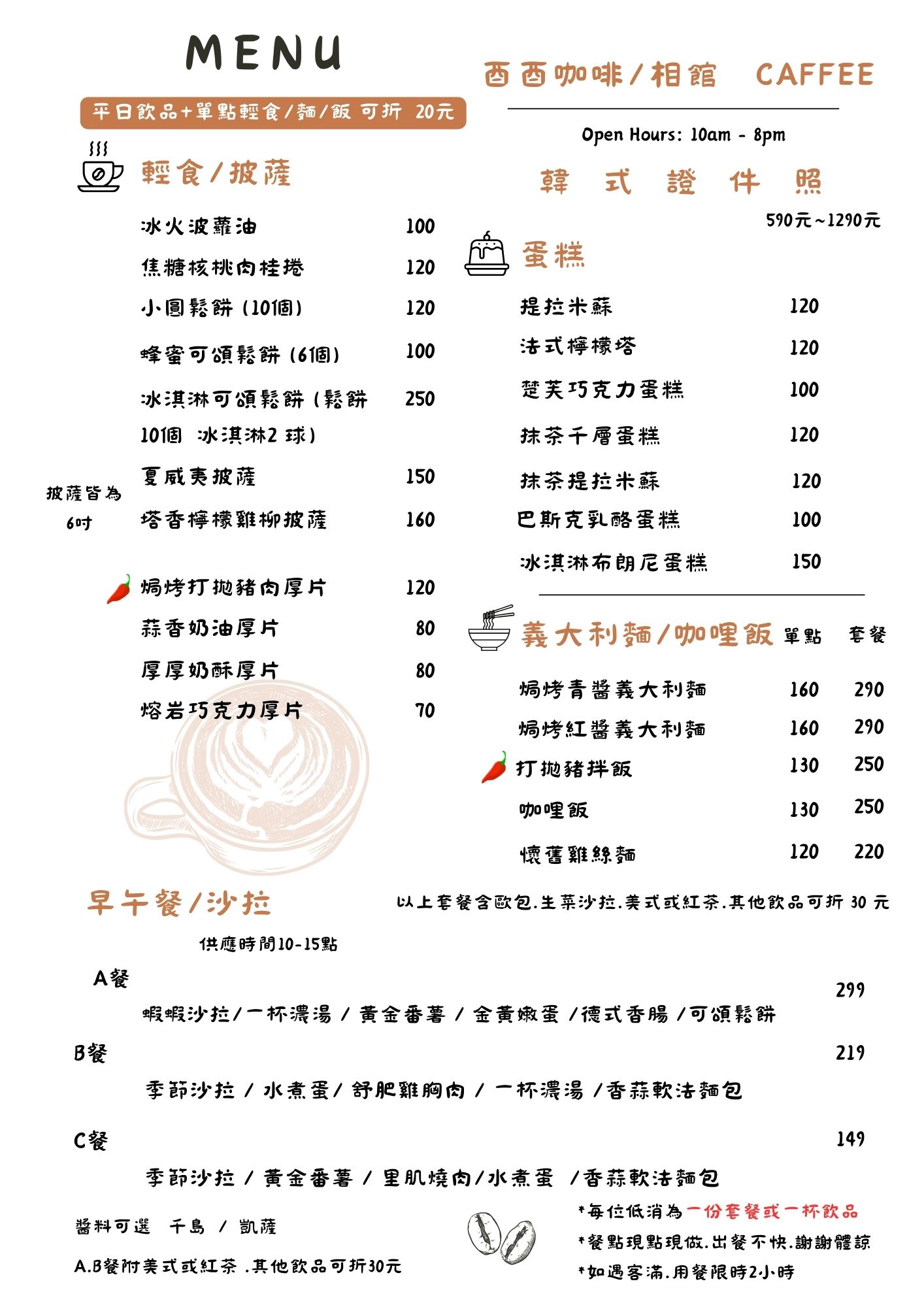 酉酉咖啡&相館菜單價位